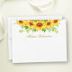 Elegant Watercolor Sunflower Floral Personalised Note Card includes golden yellow sunflowers and botanical greenery. Gold Text.