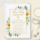 Modern Elegant First Holy Communion Invitation includes watercolor sunflowers, eucalyptus leaves and other beautiful botanical greenery foliage. Gold Cross.