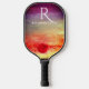 Watercolor Sunset Mountains Monogrammed Pickleball Paddle
