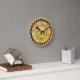 The clock did not take as long to arrive as I thought it might and was extremely well packaged. I didn't do the measurements so I didn't realize it is a little smaller than the average clock but that does not matter (just make sure you check if that's important to you).It is really nifty! It seems very solid and well made not flimsy at all. It has been going well and has kept good time in its few weeks on my wall. Nice product. Gets noticed too! Nicer in real life than the picture but true to the picture