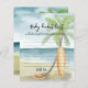 Baby on Board! Baby shower invitation - perfect for a summer baby shower. Beach theme. Watercolor design has a ocean and beach scene with surfboard, palm tree and summer hat.