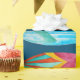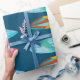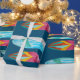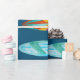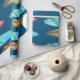 Colourful watercolor pattern features a duo of surfboards in island colours on teal background.