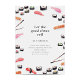 Invite your guests to a sushi themed birthday party with this watercolor invite. The party details are elegantly placed at the centre of the invite, ensuring that the information is the focal point. This central arrangement is surrounded by beautifully rendered watercolor sushi illustrations, including nigiri, maki rolls, and sashimi, each painted with a delicate touch that captures the essence of these culinary favourites.