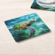 Watercolor Swimming Sea Turtle Square Paper Coaster