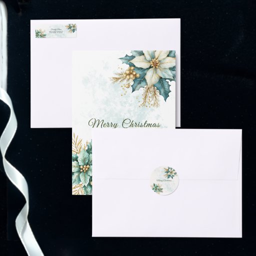 Watercolor Teal Floral Christmas Holiday Gift Box