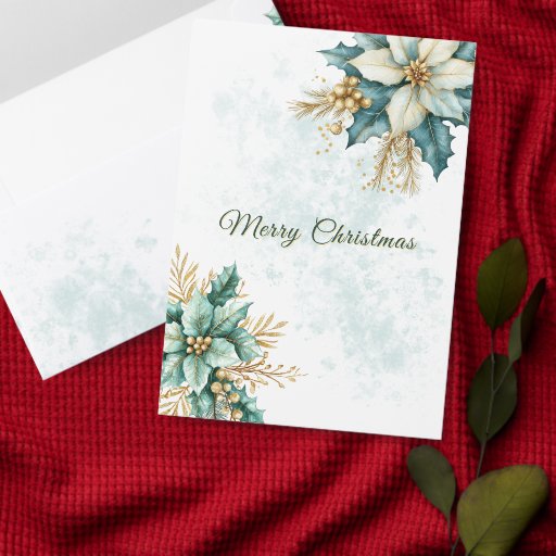 Beautiful Watercolor Teal Floral Christmas Holiday Water Bottle Label