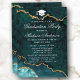 Modern Elegant Watercolor Teal and Gold Marble Agate Geode Graduation Party Invitation