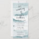 Modern wedding invitation, featuring teal landscape watercolor misty mountains