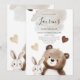 Celebrate the upcoming arrival of a little one with this adorable watercolor baby shower invitation. Featuring a sweet teddy bear and bunny illustration in soft neutral tones, this elegant and gender-neutral design is perfect for boys, girls, or surprise baby showers. Ideal for modern, minimalist, and woodland-themed baby celebrations. Fully customizable with your event details for a charming and memorable invitation.