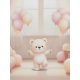 Perfect for gender boho themed baby showers, this editable design features soft watercolor tones and a playful teddy bear with balloons.