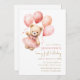 Watercolor Teddy Bear Girl 1st Birthday Invitation