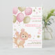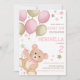 Watercolor Teddy Bear Pink Gold Girls Birthday Invitation