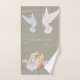 This beautifully elegant Thanksgiving hand towel is designed with hand-painted watercolor fall pumpkins and a white dove of peace in flight holding an olive branch.