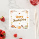 Get together for a fun Thanksgiving or Friendsgiving celebration. Watercolor pumpkins, autumn leaves, a turkey, pumpkin pie, and a pilgrim hat feature among other items on this napkin to make the holiday special. Tiny leaves surround the edges of the napkin. Perfect accompaniment for the table at your Thanksgiving or Friendsgiving dinner or other autumn-time celebration. Available with matching products.