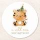 Watercolor Tiger Safari Baby Shower Round Paper Coaster