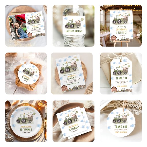 Watercolor Tractor Farm 1st Birthday Water Bottle Label