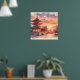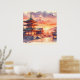 Watercolor Traditional Japanese Temple in Sunset Poster