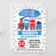 Looking for a train 1st or 2nd birthday invitation? This design includes a cute train, some blue and red confetti, a banner and various decorative elements on a white background. Some of the text is not editable. This invitation is a cute way to invite your little one's guests.