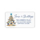 Modern Minimalist Elegance Calligraphy Ink Pen Handwritten Script Seas & Greetings Coastal Return Address Labels include a Watercolor Christmas Tree make of beach ocean driftwood, seashells, sand dollars, nautical anchor ornament and topped with a starfish. Navy Blue Text.