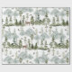 Watercolor Trees And Deer Green Christmas Wrapping Paper