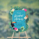 Colourful bridal shower welcome sign featuring a teal frame bordered by a bold toucan sitting among watercolor hibiscus blooms and palm leaves. This tropical acrylic sign design is easily adaptable for summer, beach and tropical weddings, birthdays and other special events. Search ID577 to see matching products.