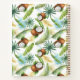 Check out this watercolor design featuring tropical leaves and coconuts.