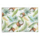 Check out this watercolor design featuring tropical leaves and coconuts.
