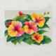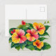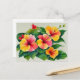 Watercolor Tropical Flora Red Yellow Hibiscus Postcard