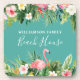 Watercolor Tropical Floral Family Name Beach House Coaster