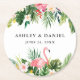 Watercolor Tropical Floral Flamingo Wedding Round Paper Coaster