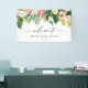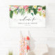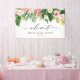 Welcome your guests with this customisable baby shower welcome banner, featuring a vibrant watercolor tropical garland of lush palm leaves, banana leaves, hibiscus, plumeria, and more. This tropical-inspired design sets the tone for a beach, tropical, or destination baby showers.