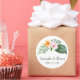 A vibrant arrangement of watercolor hibiscus and tropical foliage highlight this colourful favour sticker. The lovely watercolor hibiscus blossoms are in shades of peach and orange with tropical palms and greenery accents. It's a perfect choice for beach weddings, destination weddings, tropical-theme weddings, luaus, parties and more. Personalise with your desired text by editing the sample text in the easy-to-use design template. Aloha!