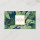 A watercolor pattern of tropical leaves and plants fills the background of this stylish business card. Your initials are elegantly displayed in a white and gold framed box for an instant logo. This double-sided card design provides plenty of room on the backside for your contact info and details. A perfect on-trend motif for any creative professional, interior designers, fashion boutiques, online stores and more. Original watercolor illustration and design © 1201AM Design Studio | www.1201am.com