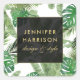 Watercolor Tropical Leaves Pattern on White Square Sticker