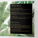 A watercolor pattern of tropical leaves and plants fills the background of this stylish tri-fold brochure. Your name or business name is elegantly displayed in a black and gold framed box on the front cover. Update the customisable text to fit your brand, and personalise the details throughout the brochure for your own usage. These 5x7 brochures are the perfect size to display your price lists and menu of services, or describe your product line. A great marketing piece to hand out to potential clients to quickly introduce your business. Please contact the designer for help with special typesetting or layout variations. Art and design © 1201AM Design Studio | www.1201am.com