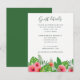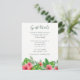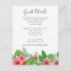 Watercolor painting tropical foliage and Hibiscus flowers beach wedding celebration guest information card with handwriting typography customisable to your event specifics.
