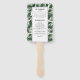 Watercolor tropical palm leaf wedding announcement hand fan. Elegant painted design. Soft muted tones add a calm elegance to this wedding suite.