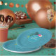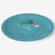 Colourful paper plates featuring a round teal frame bordered by watercolor hibiscus blooms and palm leaves. The repeating, palm leaf background pattern is optional and can be changed if preferred. Script text of 'Love and Thanks' is also optional. Add your names and wedding date using the provided template. This tropical design is perfect for summer, beach and tropical weddings, birthdays and other special events. Search ID577 to see matching products.