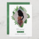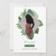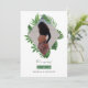 Trendy tropical greenery leaves pregnancy announcement photo card designed to be quickly and easily customised to your specifics. A portrait photo is recommended.