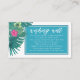 Colourful wedding 'Wishing Well' card featuring a teal frame bordered by watercolor hibiscus blooms and palm leaves. The enclosure card shown here is the first version of three different poems we've written to provide gifting options for your guests. Leave as is or replace with your own wording. Search ID577 to see all the matching pieces in this beautiful wedding set.