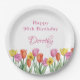 Watercolor Tulips 90th Birthday Party Paper Plate
