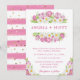 Gorgeous Watercolor Spring Pink Tulips and Daffodils border frame design and pink stripes background