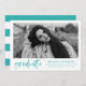 Invite guests to your graduation party with our stylish, Modern Watercolor Brush Script graduation party invitations! The modern graduation party invitations display the graduate's photo framed in white with "graduate" in a trendy turquoise watercolor brush script. Add the graduate's name, school, graduation year, and future plans. The invitation reverses to a turquoise and white striped background with space for your party details.