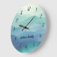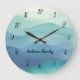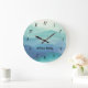 Watercolor Turquoise Navy Blue Ombre Waves Numbers Large Clock