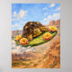 Watercolor drawing of a Sulcata Tortoise flying on a magic cactus pad beyond Grand Canyon Arizona. Perfect for birthday or just because gift for turtle lovers.