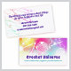 Watercolor style background with balls of yarn, crochet hooks and glowing stars on this business card for a crochet or yarn crafts business.