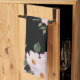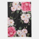 Watercolor Vibrant Pink White Roses Modern Black Tea Towel