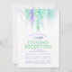 Loose vine type flowers botanical watercolor painting art vertical evening wedding reception invitations. Beautiful floral art loose watercolor art design ideal for an evening wedding party in pretty shades of blue, purple and green. © Original watercolor art and design by Sarah Trett www.sarahtrett.com for www.mylittleedenweddings.com