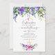 Violet and purple floral confirmation invitation with elegant handwriting typography.