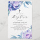 Invite guests with this customisable baptism invitation. It features watercolor illustrations of peony flowers with matching floral pattern. Personalise by adding your details. You can change the peony pattern to a photo or any other image. This purple peony invitation is perfect for fall and winter baptisms.